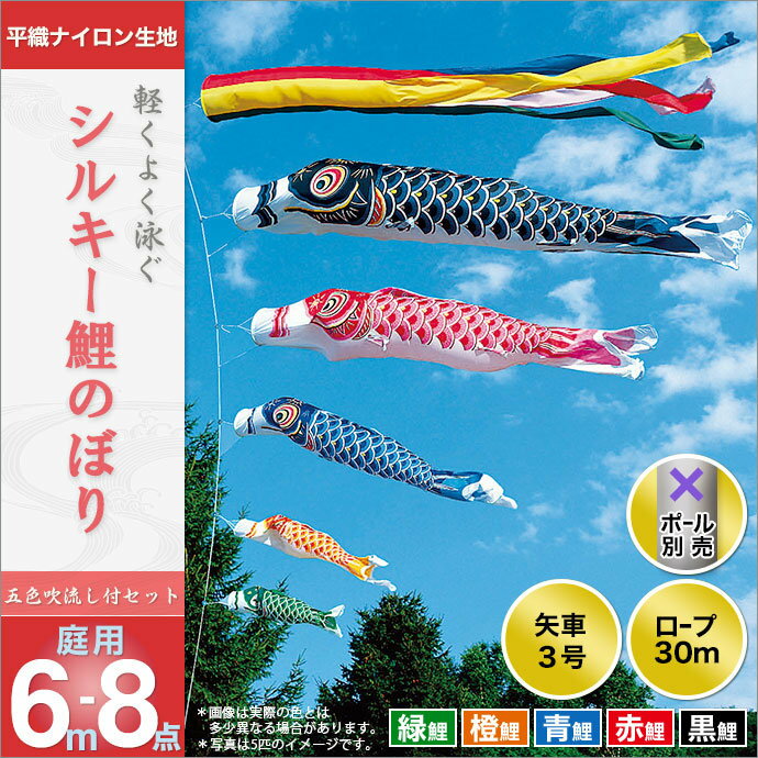 こいのぼり 庭 庭園用 こいのぼり 旭天竜 鯉のぼり (矢車・ロープ・ポール付) シルキー鯉・ガーデンセット(五色吹流し) 3m6点セット(ガーデン用・平織ナイロン生地) 天祥 鯉のぼり オシャレ