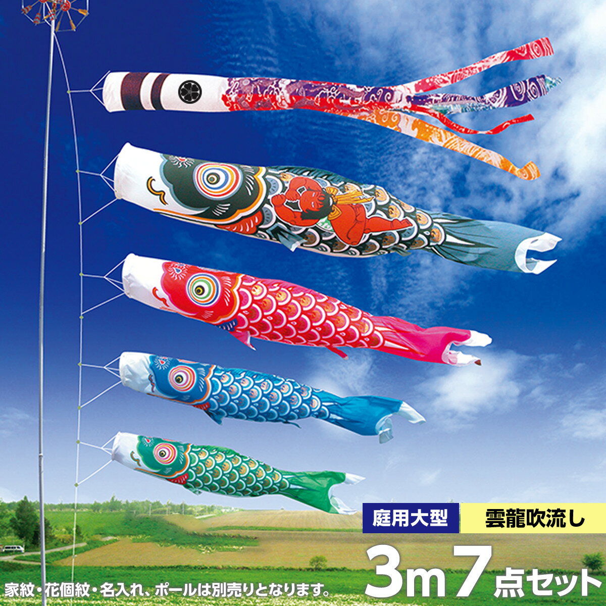 こいのぼり 庭 庭園用 こいのぼり 徳永 のぼり 家紋・名前入可能 (ポール別売) 錦龍セット 9m7点セット 錦龍(ガーデン用・ナイロンタフタ生地) 天祥 鯉のぼり オシャレ