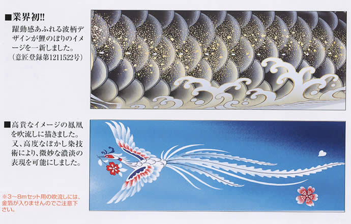 吹流しは高級品にふさわしく高貴なイメージの鳳凰を描きました。