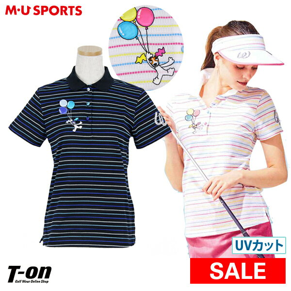 MUスポーツ エムユー スポーツ M.U SPORTS MUSPORTS レディース ポロシャツ 半袖 UVカット 吸汗速乾 マルチドットボーダー柄 メルー刺繍 【送料無料】 2020 春夏 新作 ゴルフウェア