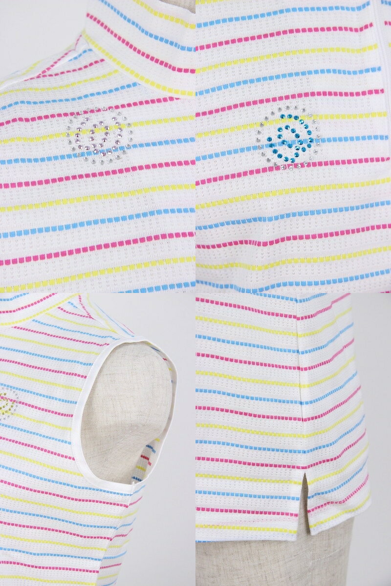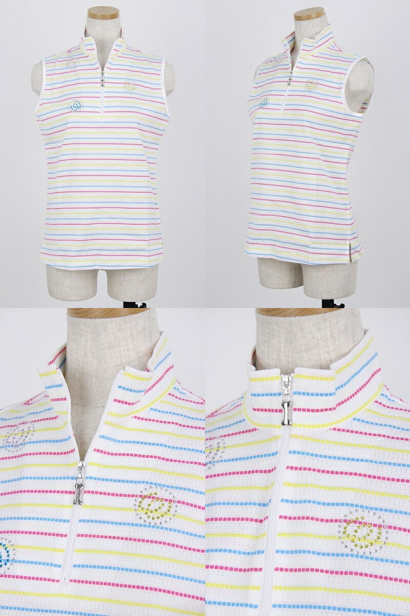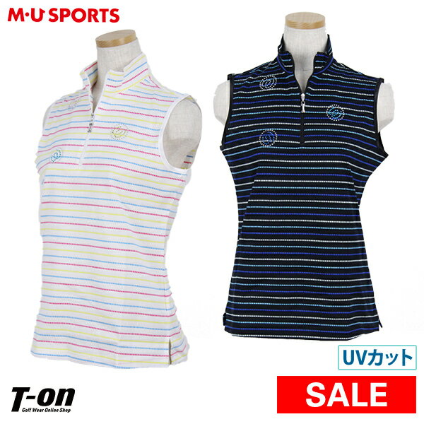MUスポーツ エムユー スポーツ M.U SPORTS MUSPORTS レディース ポロシャツ ハイネック ハーフジップアップ ノースリーブ UVカット 吸汗速乾 マルチドットボーダー 柄 ジルコンロゴ 【送料無料】 2020 春夏 新作 ゴルフウェア
